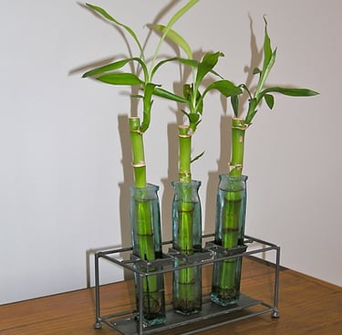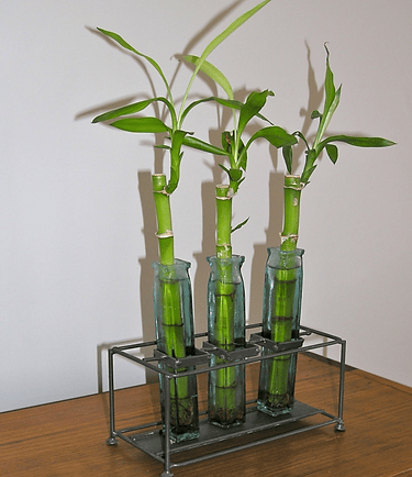 Lucky bamboo is a popular indoor plant kept in water. These plants roots should be fully covered by water, so the plants roots are kept healthy and moist all the time. Fertilizer these plants once a month with half strength. Lucky bamboo should be placed in well-lit area, with good cross ventilation.