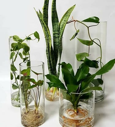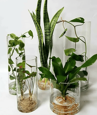 Many indoor or outdoor plants can be grown from a cutting in a water-only medium, in almost any container that can hold water, like a glass jar or a vase.