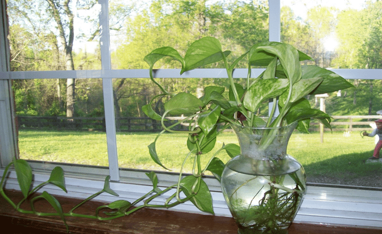 Pothos are easy to grow water plants. They really don’t need much maintenance, fertilize once a month with water soluble fertilizer. It is vining plant, so there will be a lot aerial root production. It can handle low light areas as well.